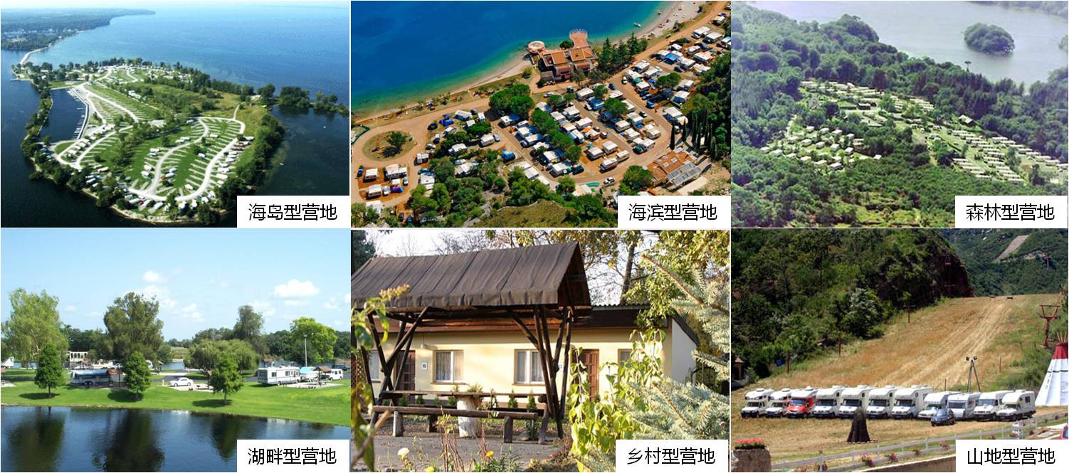 依托环境划分:山地型营地、森林型营地、海滨型营地、海岛型营地、湖畔型营地、乡村型营地