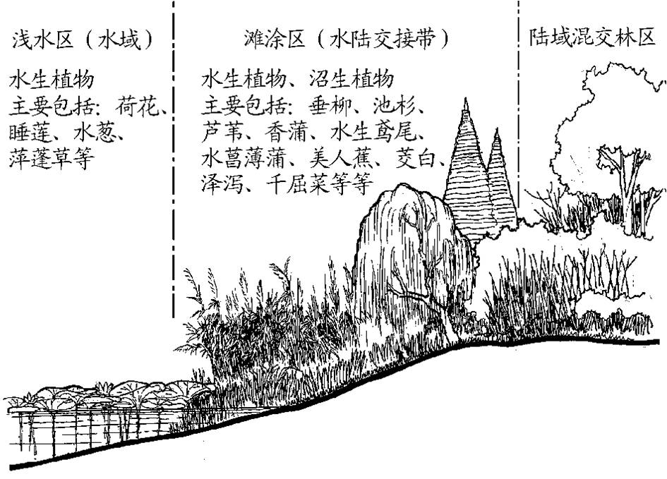 湿地植物要体现本土化。为了体现生物多样性,在建设湿地时栽植多种植物,各种植物对降解水质发挥着不同的作用。在选择植物时应注意水土因素和南北气候差别,尽量选择本土化的植物。